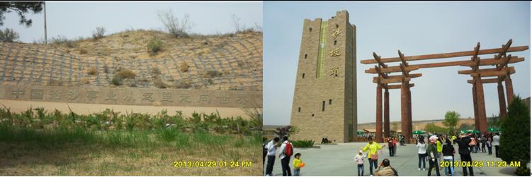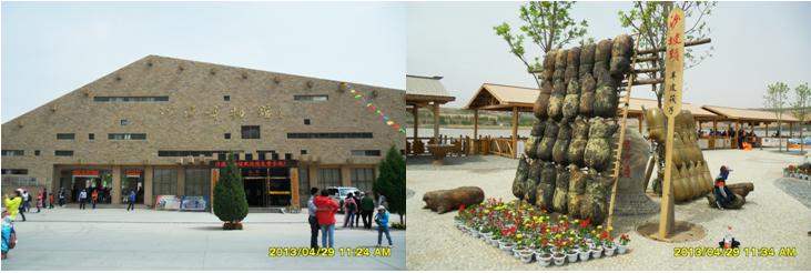 我們在沙坡頭旅游黃河區(qū)(南區(qū))買了門票,隨著人流,進(jìn)入景區(qū)。景區(qū)主大門是一個四四方方的立柱,加上“井”字形建筑造型構(gòu)成,立柱頂部呈長城烽火臺垛口造型,立柱右側(cè)上部有三個鎏金大字“沙坡頭”。 在景區(qū)大門東側(cè),是沙漠博物館,它的頂部呈金字形造型,游客可以免費(fèi)進(jìn)去參觀。
