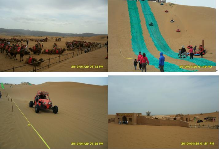 4月29日,吃罷早餐,簡單準(zhǔn)備,我們登上了去中衛(wèi)的中巴,開始了我們的旅程。約一小時的路程,我們到了中衛(wèi),一下中巴車,馬上就感受到了旅游旺季旅游景點(diǎn)的“熱”。在中衛(wèi)汽車站,沙坡頭旅游公司工作人員得知我們?nèi)ド称骂^玩,便熱情向我們介紹旅游套餐。各種游玩項(xiàng)目價(jià)格令人嗔舌,沙坡頭旅游景區(qū)門票在淡季2元/人,在“五一”小長假這樣的旺季,立刻飆升到90元/人,寧夏籍的游客憑身份證每人可以享受65元優(yōu)惠價(jià),大部分游玩項(xiàng)目價(jià)格都在80元/人。